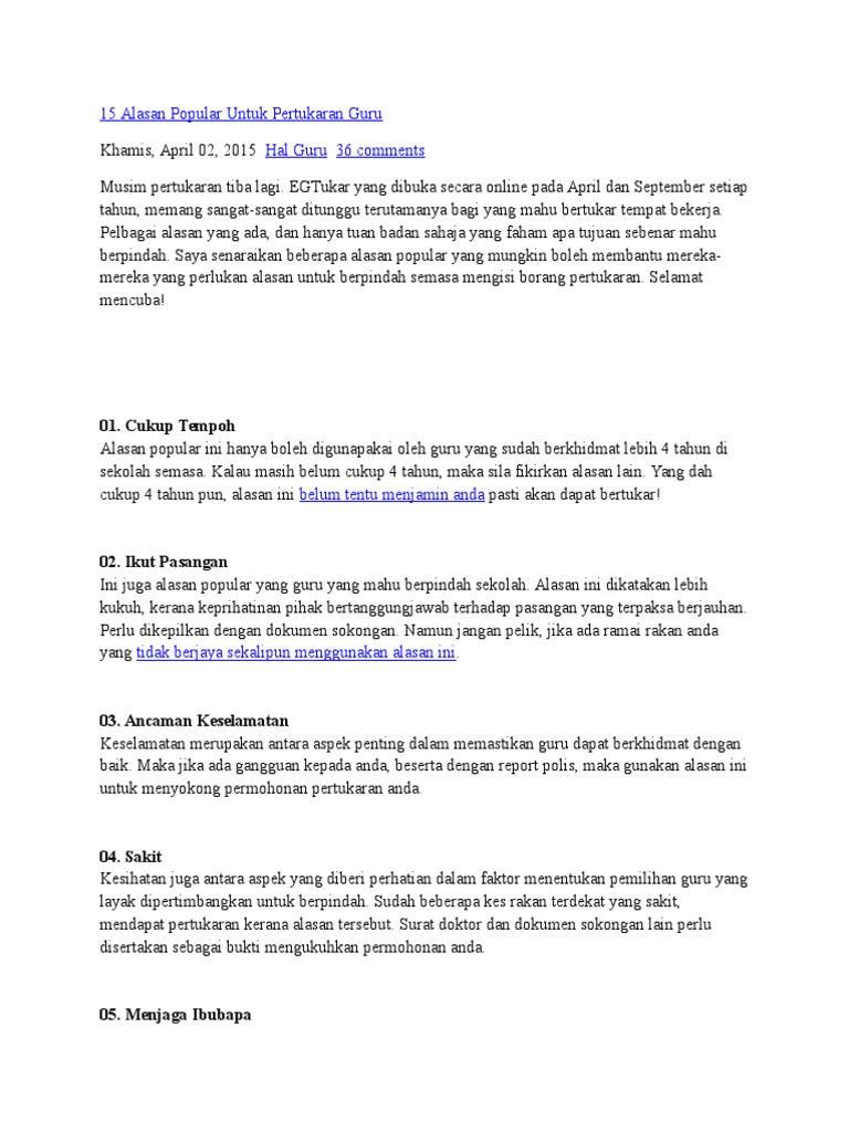 Pdf Contoh Surat Rayuan Eg Tukar Zuebir Othman Academia Edu