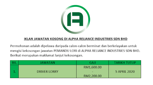 Iklan Jawatan Kosong Di Alpha Reliance Industries Sdn Bhd Mingguan Jawatan