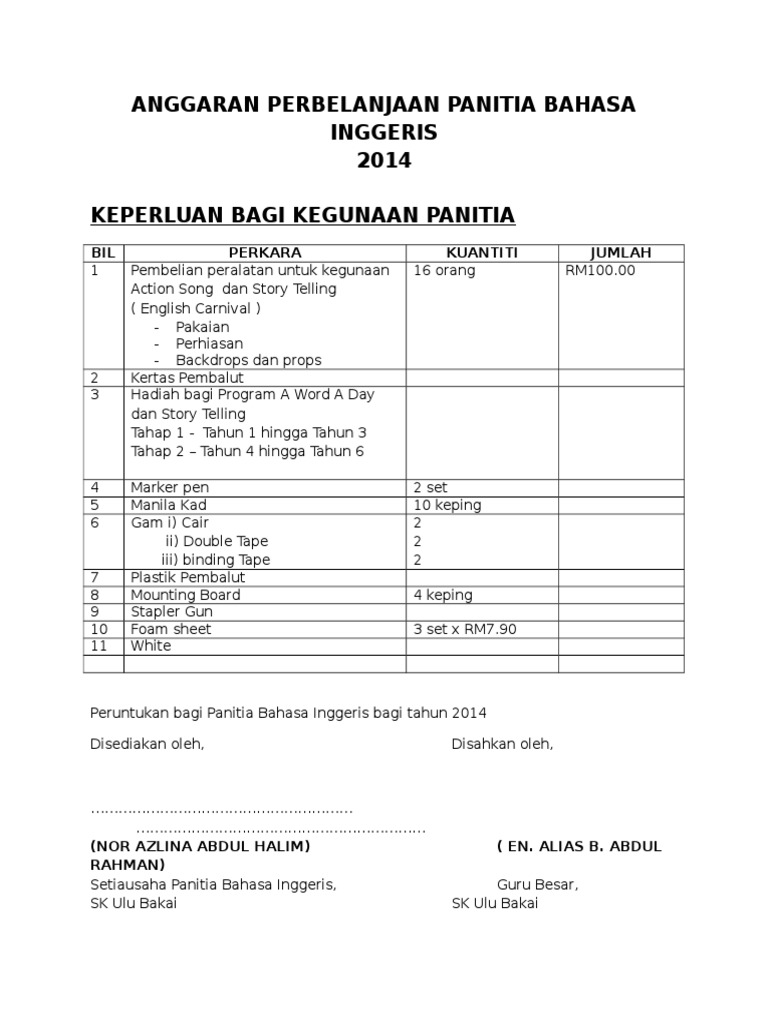Doc Anggaran Perbelanjaan Panitia Bahasa Inggeris Tahun 2011 Flowergirl Flowergirl Academia Edu