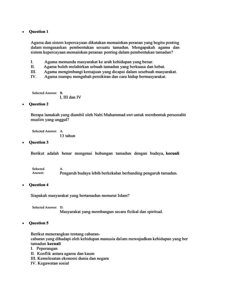 Quiz 1 Docx Question 1 Berikut Adalah Benar Mengenai Hubungan Tamadun Dengan Budaya Selected Answer Kecuali B Pengaruh Budaya Lebih Berkekalan Course Hero