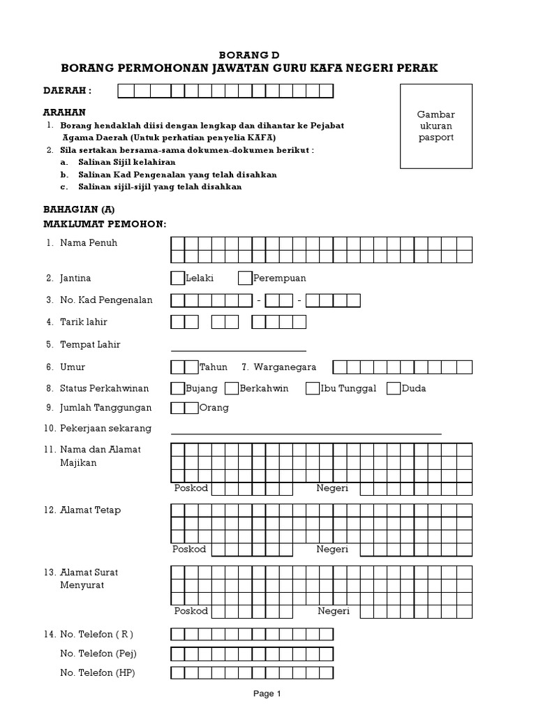 Borang Permohonan Guru Kafa Pdf