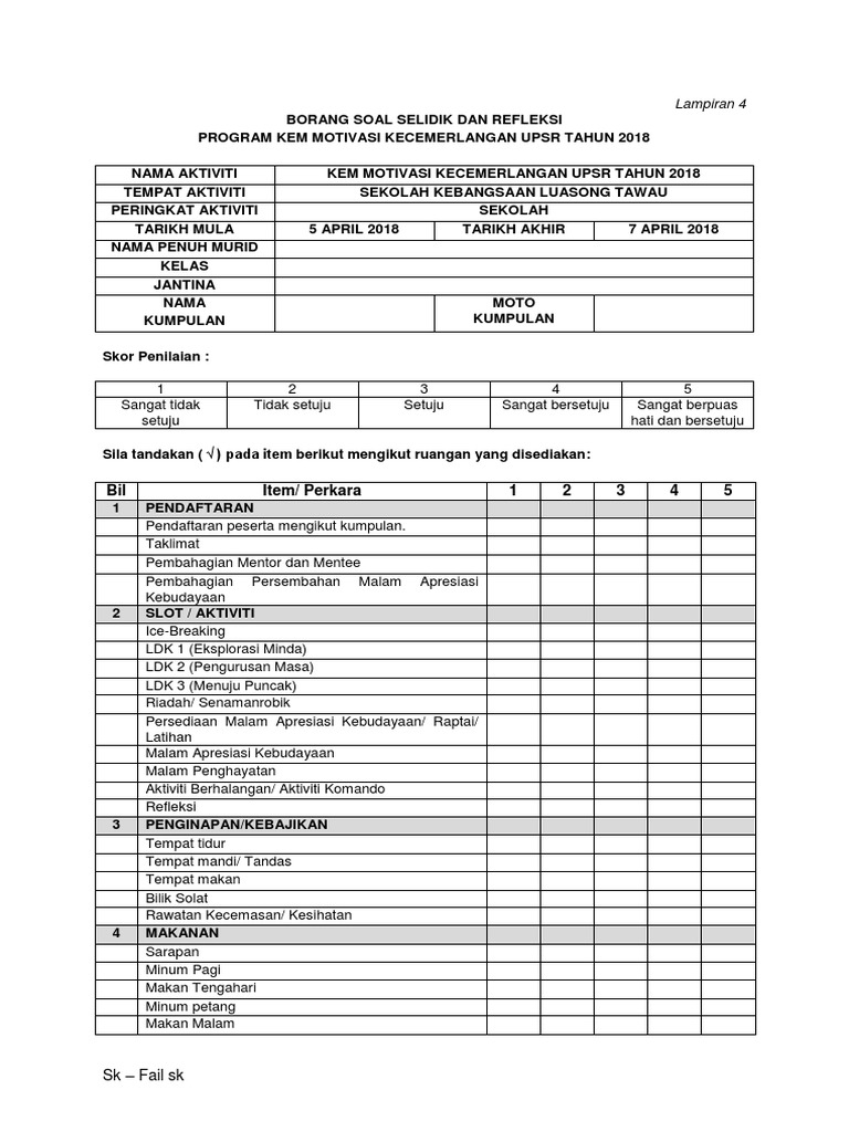 Perancangan dan perlaksanaan program telah dibuat dengan lancar. Contoh borang soal selidik kem motivasi upsr contoh borang soal selidik kem motivasi semenyih contoh borang soal selidik kem motivasi janda contoh borang soal selidik kem kepimpinan contoh borang soal selidik pengajian am contoh borang soal selidik geografi contoh borang soal selidik produk contoh borang soal selidik geografi 2017 contoh borang permohonan contoh borang keberhasilan guru. 139 tinjauan ini bertujuan mendapatkan pandangan anda terhadap pembelajaran membaca bahasa inggeris disekolah. Carousel previous carousel next.
