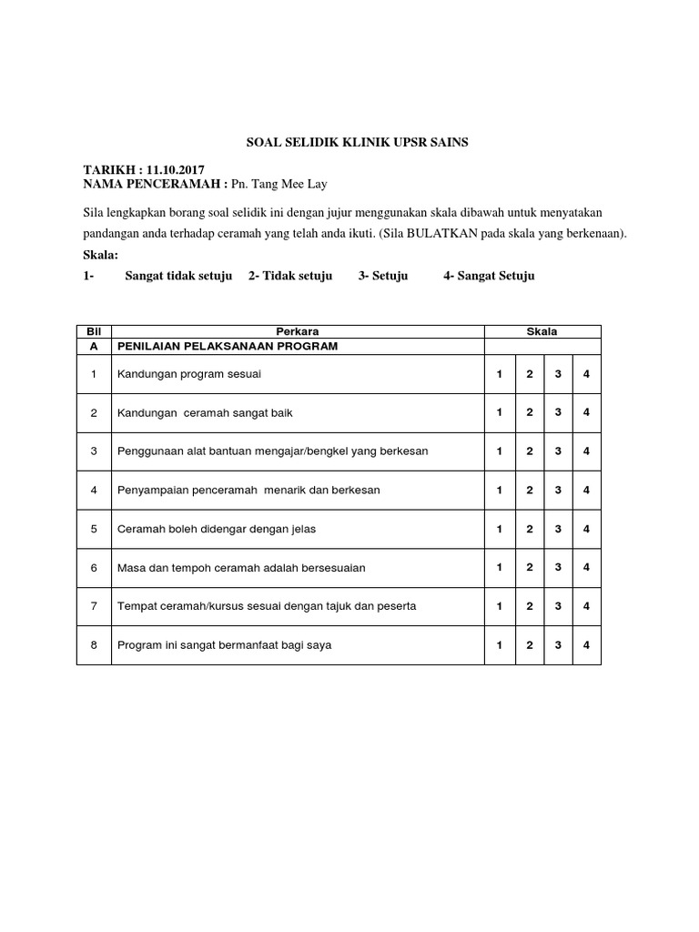 Contoh Borang Soal Selidik Selepas Kursus Contoh Tab Cute766