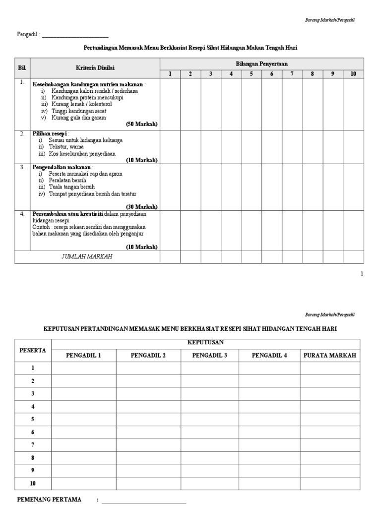 Borang Pemarkahan Pertandingan Memasak 1 Docx