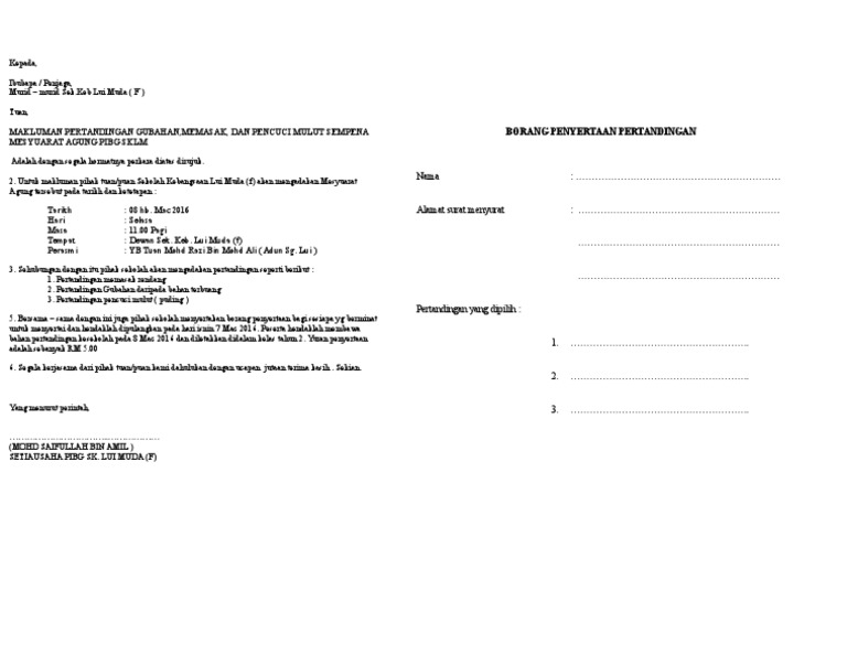 Borang Penyertaan Bagi Pertandingan Pertandingan Memasak Borang Penyertaan Bagi Pertandingan Pdf Document