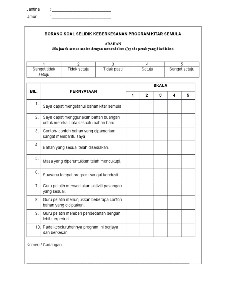 Borang Soal Selidik Kajian Penilaian Keberkesanan Kursus Dalam Pdf Document