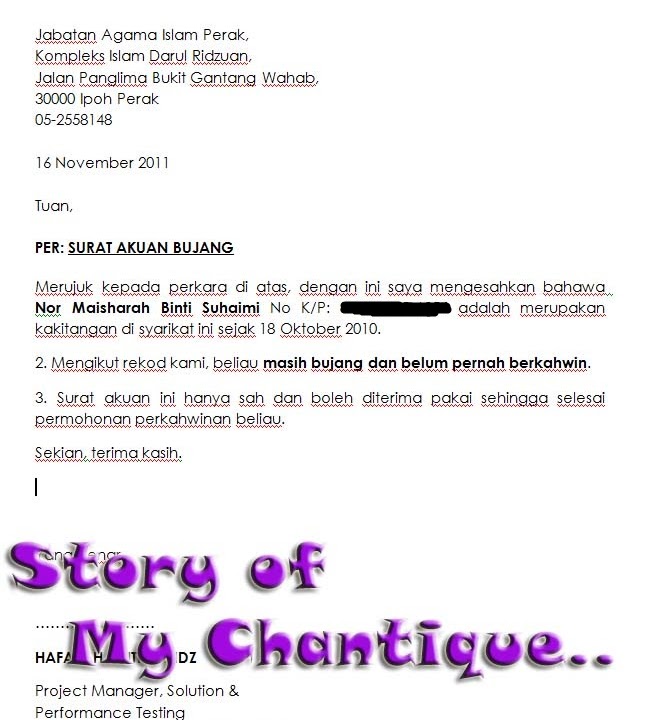Contoh Surat Rasmi Akuan Bujang Frasmi