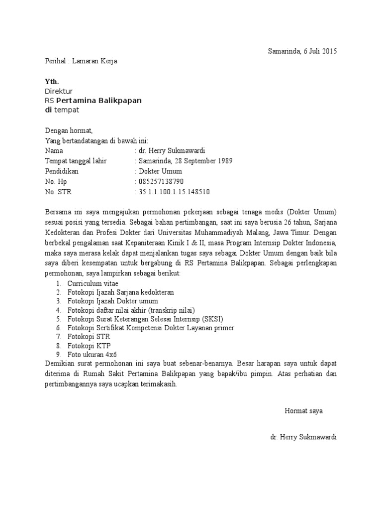 Contoh Surat Lamaran Kerja Yang Benar Di Rumah Sakit