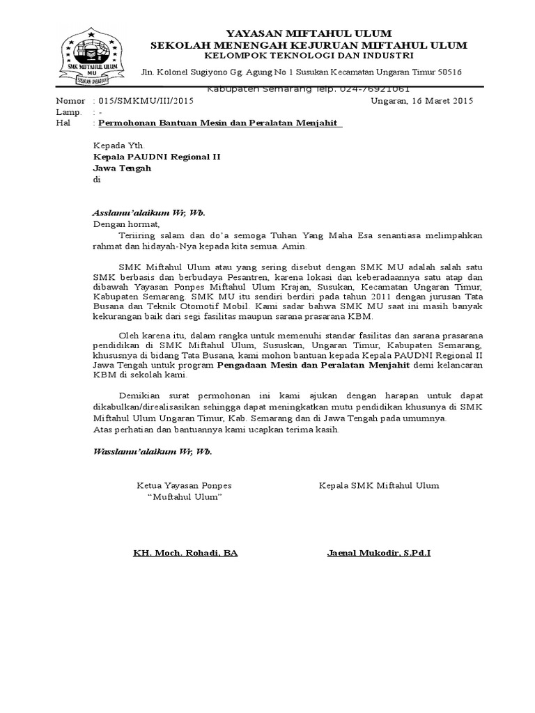 Surat Permohonan Mesin Jahit
