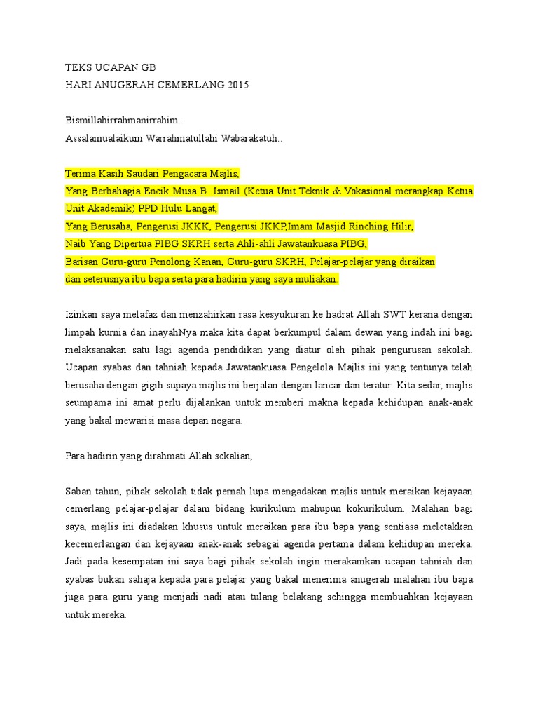 Teks Ucapan Gb Hari Anugerah 2016