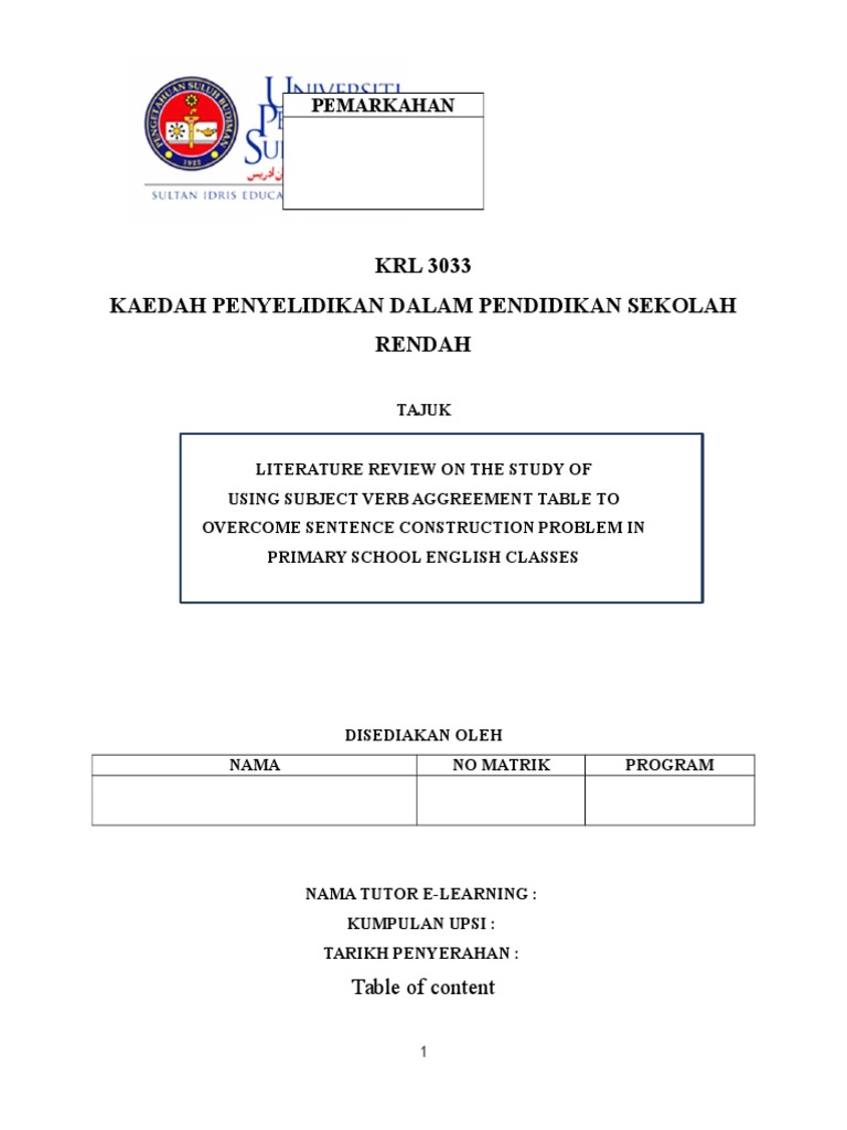 Literature Review English Language Subject Grammar