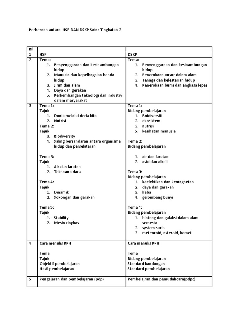 Perbezaan Antara Hsp Dan Dskp Sains Tingkatan 2 2018
