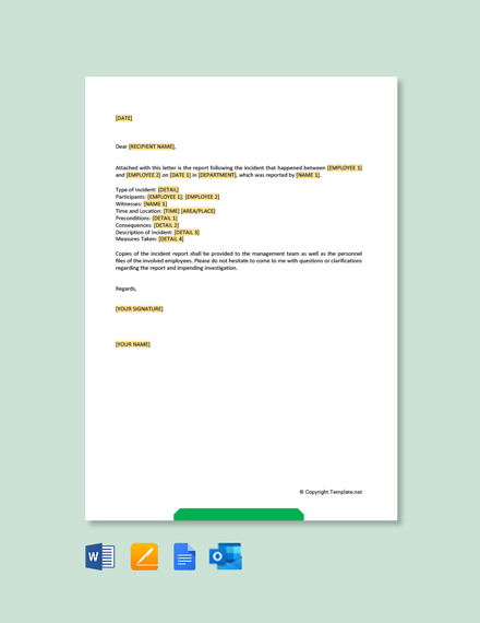 Example of incident report letter at workplace. Reporting requirements for different types of accidents and accidents you don t need to report. A sample letter of incident report is an example of how to write an informative and formally correct document which would serve as an important tool while dealing with an organizational problem. It is important to be aware of the structure and requirements for this letter in order to write it in an appropriate way so a sample letter of incident report will help to successfully accomplish. What and when to report.