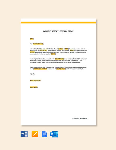 Free Incident Report Letter Workplace Template Word Google Docs Apple Pages L Outlook