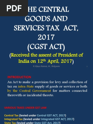 In this we have given all the reference books and book authors and. Union territory goods and services tax act 2017 14 of 2017 assented by the president of india on 12 4 2017. The central goods and services tax act 2017 no. The karnataka goods and services tax act 2017 karnataka act no 27 of 2017 chapter i page no s preliminary 1.