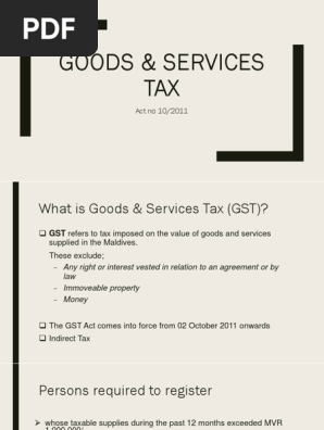 Goods Services Tax Act No 10 2011 Value Added Tax Payments