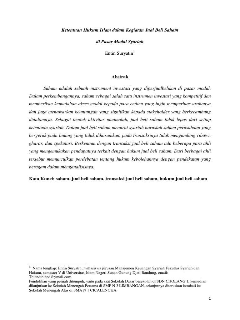 Ketentuan Hukum Islam Dalam Kegiatan Jual Beli Saham