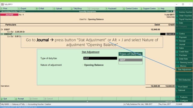 Transferring Tax Credits Of Vat Excise And Service Tax To Gst In Tally Erp9