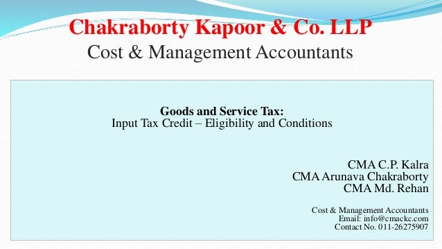 Input Tax Credit Under Goods And Services Tax Law Gst Ppt Download