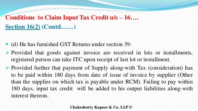 Gst Section 16 Input Tax Credit Eligibility And Conditions