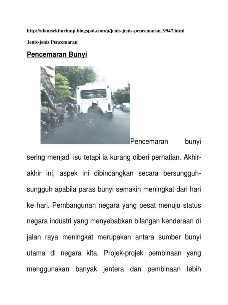 Masalah Pencemaran Global Kesan Kesan Pencemaran Bunyi
