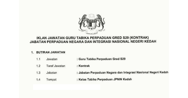 Jawatan Kosong Di Jabatan Perpaduan Negara Dan Integrasi Nasional Jpnin Negeri Kedah Guru Tabika Penolong Guru Tabika Perpaduan Jobcari Com Jawatan Kosong Terkini