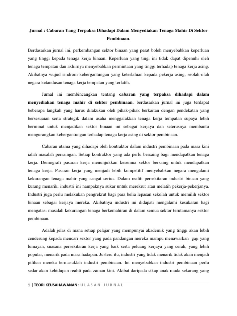 Pdf The Job Specification And Job Description For Indonesian Workers In Malaysian Construction Industry