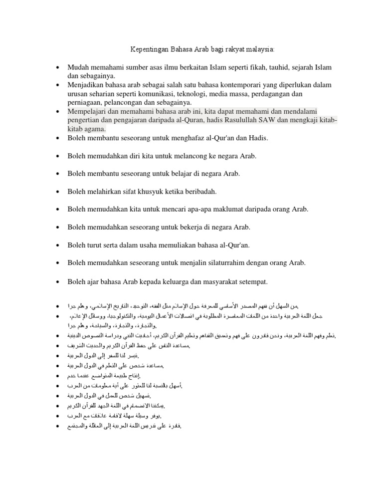 Kepentingan Mempelajari Bahasa Arab Bahasa Bahasa Arab Orang