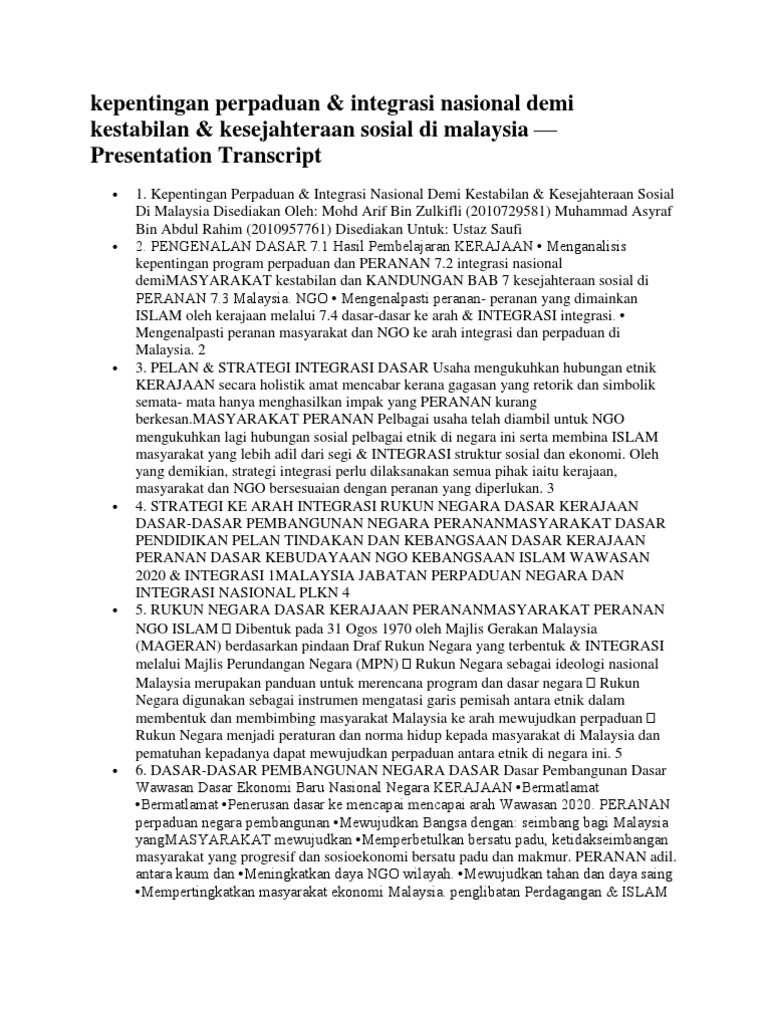 Perpaduan Dan Intergrasi Pengajian Am By Daniel Tan