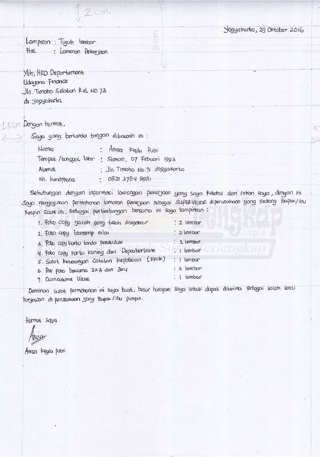 Contoh Surat Lamaran Kerja Tulis Tangan Kertas Folio Dan Hvs