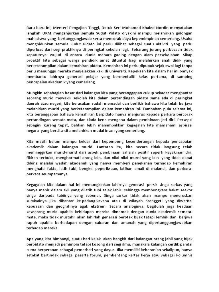 Contoh Sudut Pidato Speaker S Corner Raihan Jalaludin S Blog