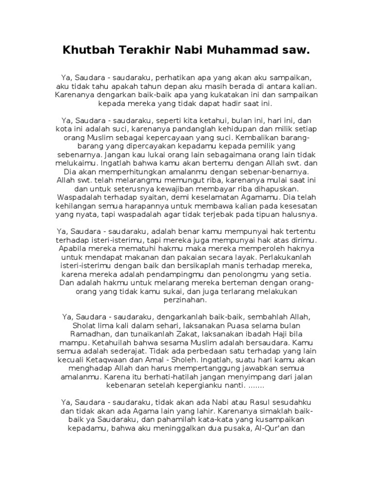 Love Islam Khutbah Terakhir Rasulullah Saw Wattpad