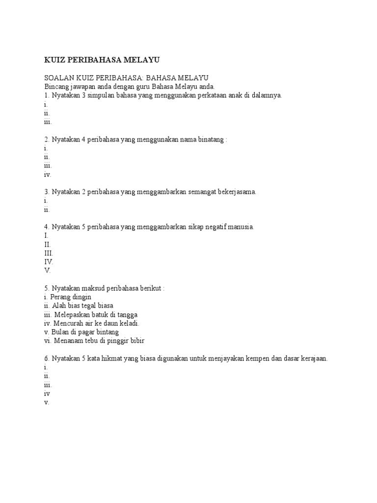 Senarai Terbesar Kuiz Bahasa Melayu Tahun 4 Yang Terhebat Dan Boleh Di Muat Turun Dengan Segera Pekeliling Terbaru Kerajaan