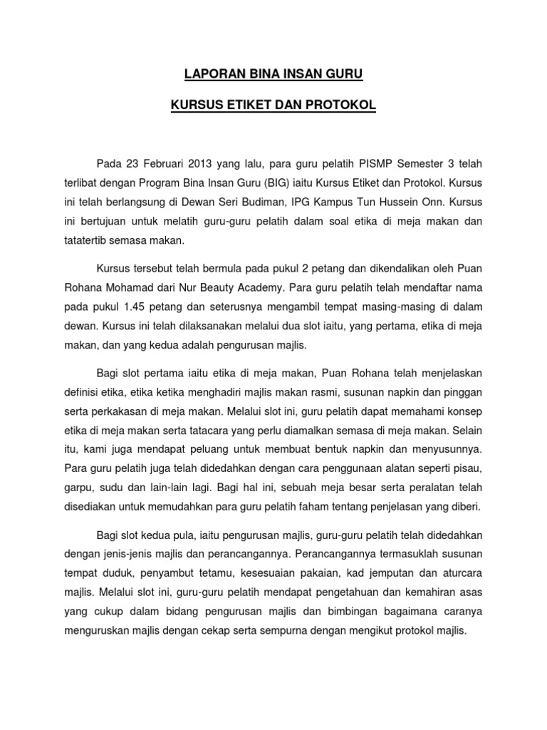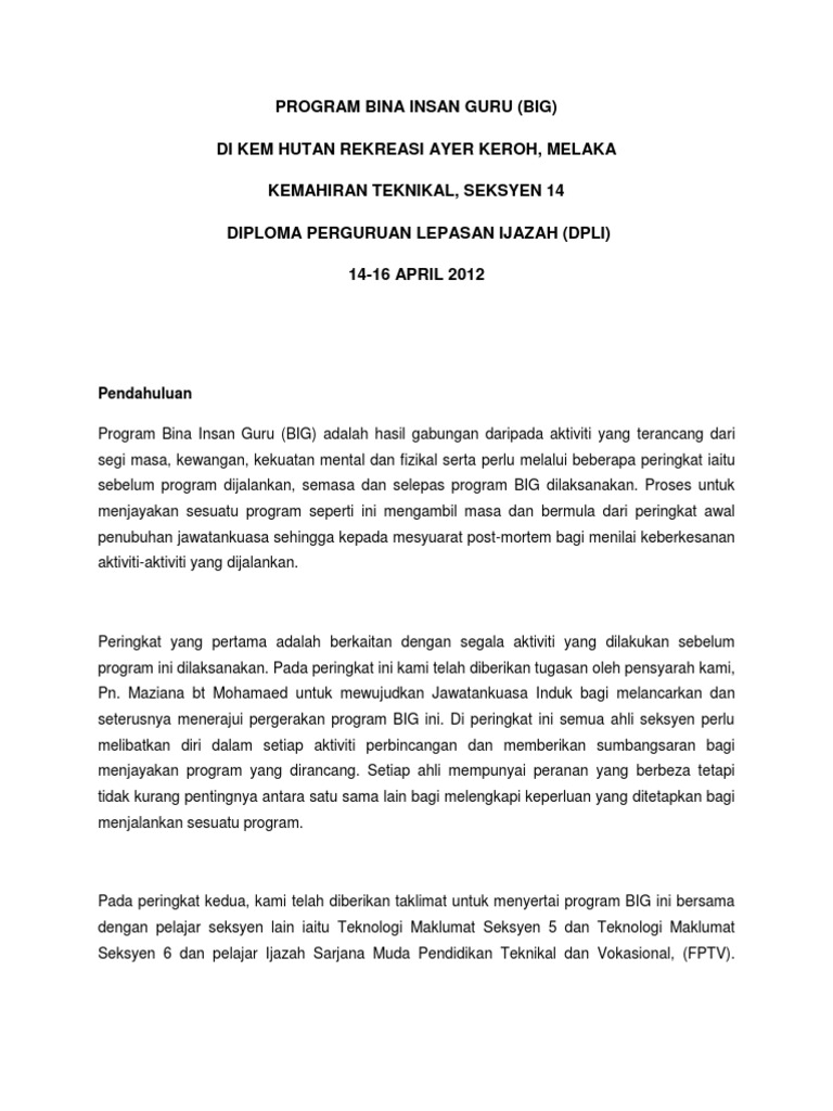 Doc Laporan Ajk Kebersihan Program Bina Insan Guru Big Siri 5 2014 Institut Pendidikan Guru Kampus Perempuan Melayu Noraini Daud Academia Edu