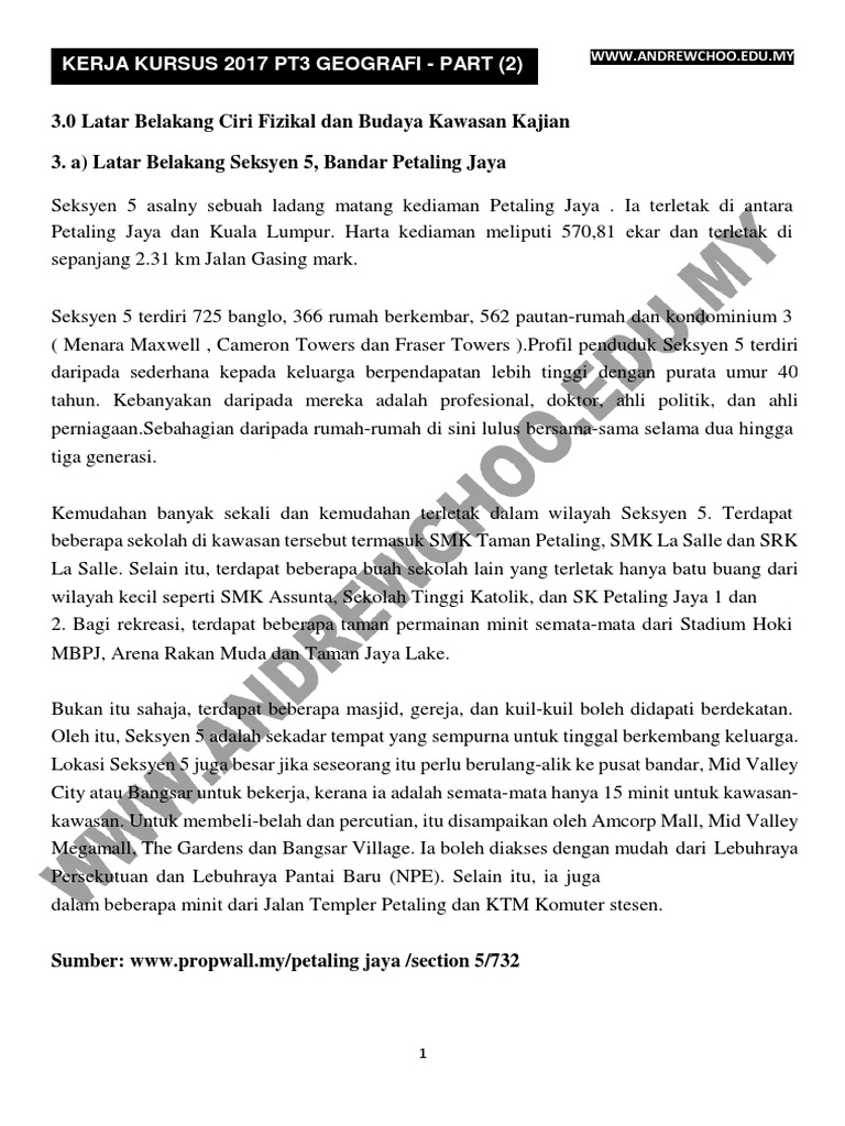 Contoh Soalan Tajuk Kerja Lapangan Tugasan Geografi Pt3 Tingkatan 3 Bumi Gemilang