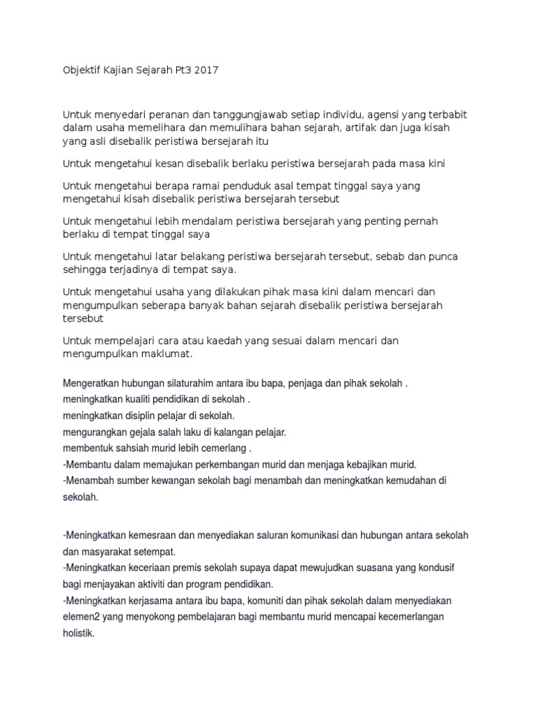 Objektif Kajian Sejarah Pt3 2017