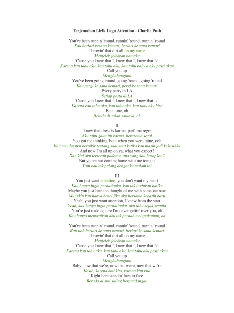 Lirik Lagu Melayu English Korea Charlie Puth Attention Wattpad