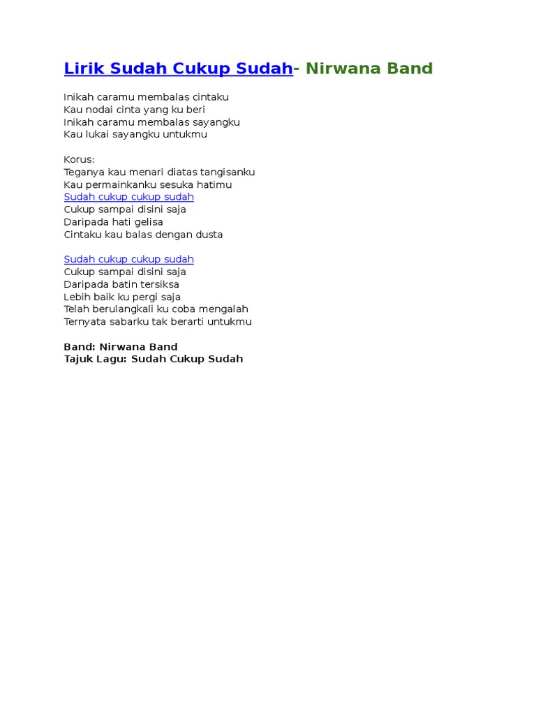 Lirik Sudah Cukup Sudah Docx Docx Document