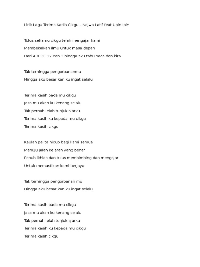 Lirik Lagu Terima Kasih Cikgu By Najwa Latif Feat Upin Ipin K546wq0x17l8