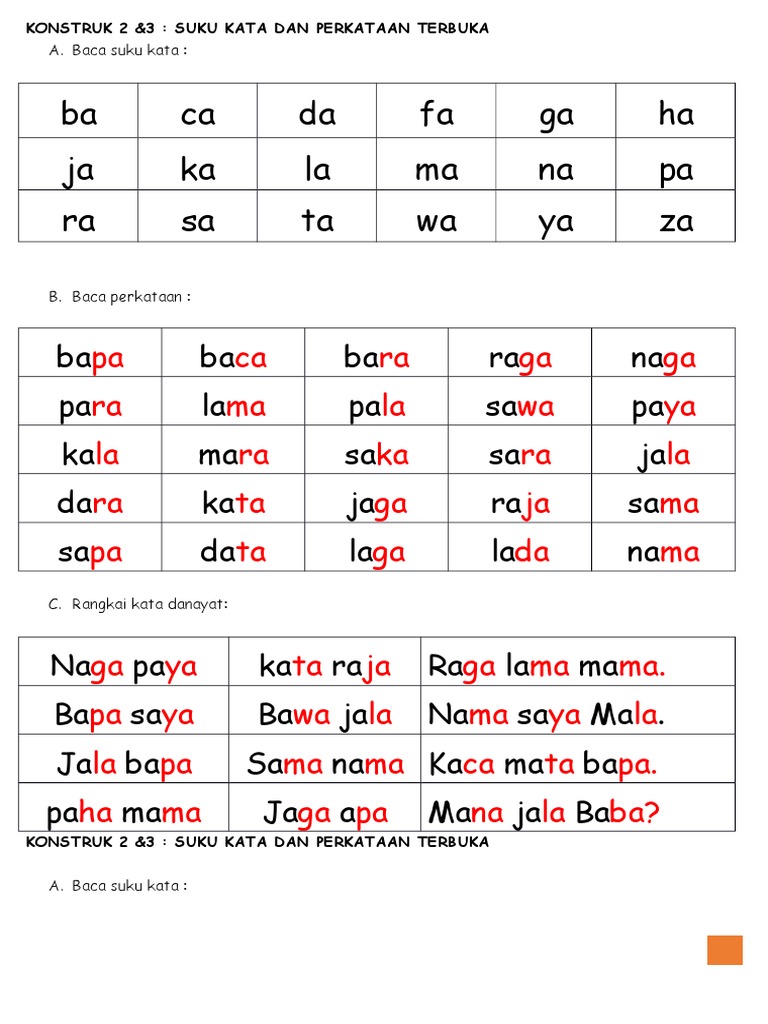 Latihan Membaca Suku Kata Terbuka Dan Bahan Prasekolah Facebook