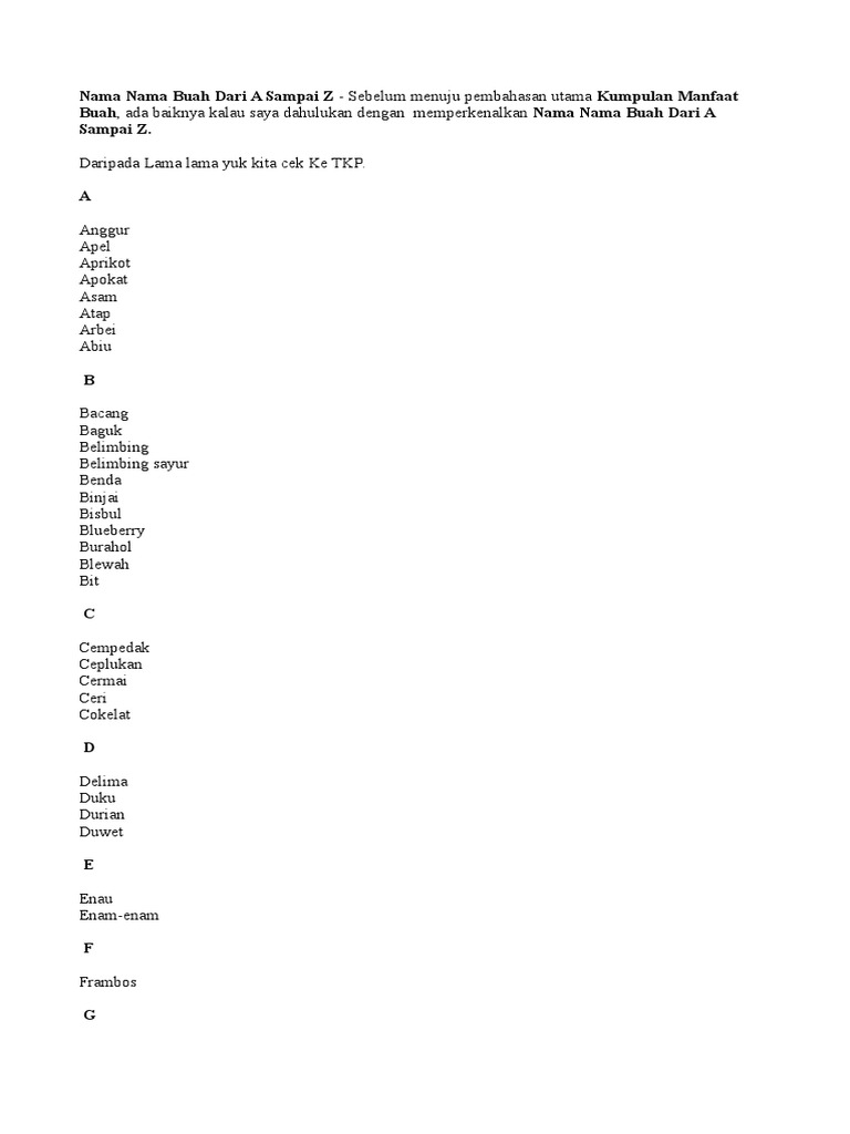 Nama Buah Buahan Dari A Sampai Z Www Buahaz Com