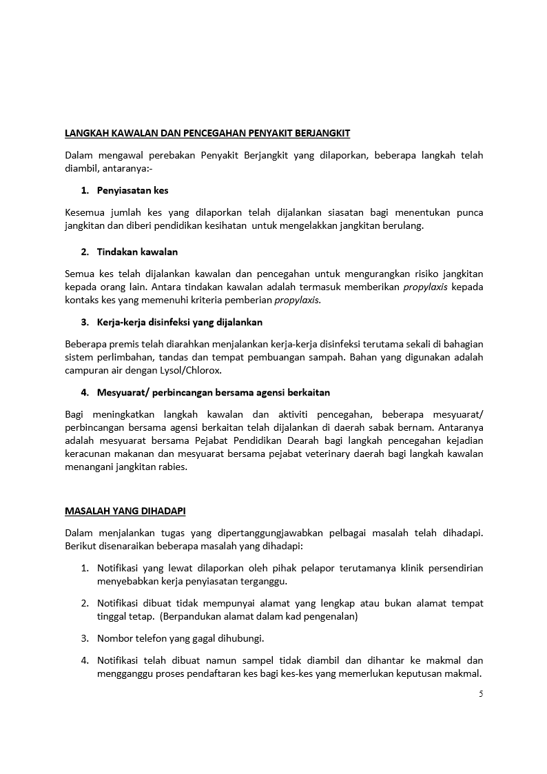 Laporan Tahunan Pejabat Kesihatan Daerah Sabak Bernam Laporan Tahunan 2017 Unit Kawalan Penyakit Berjangkit