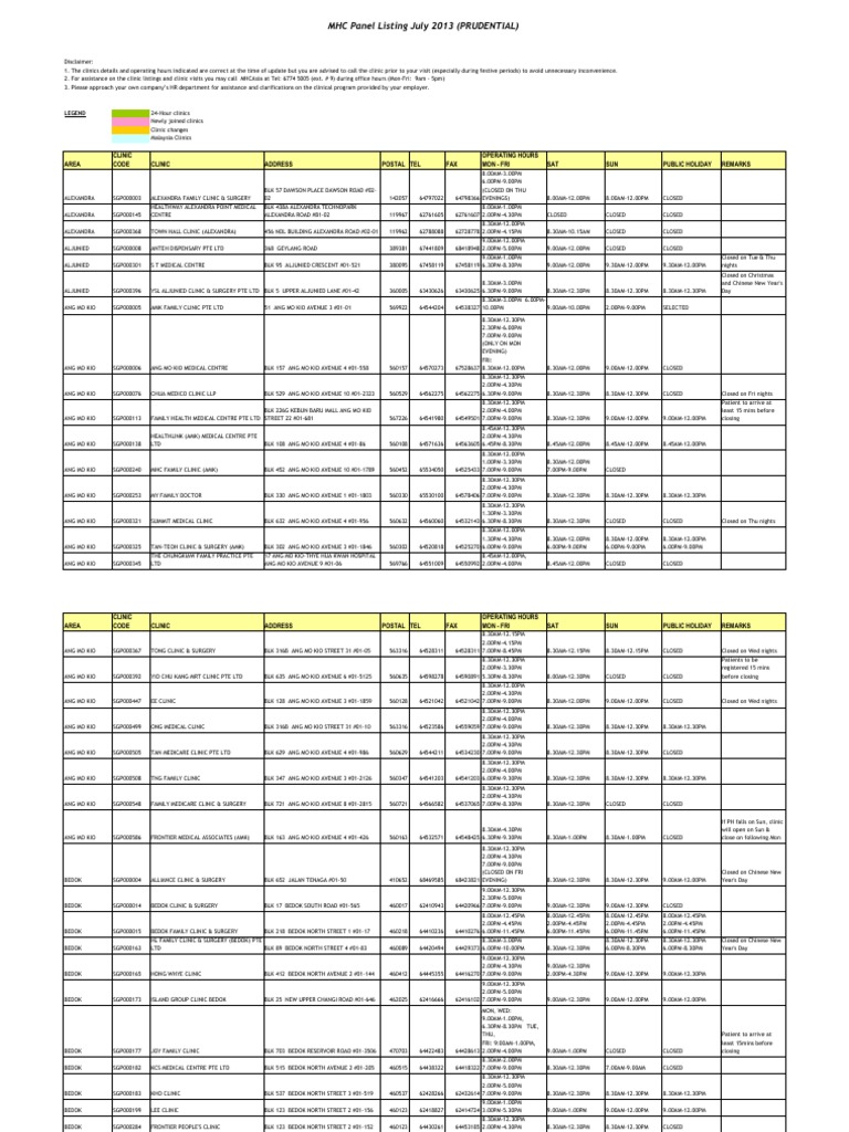 Pruclinicare Gp Panel List Vjuly 2013 Medical And Health Organizations Singapore