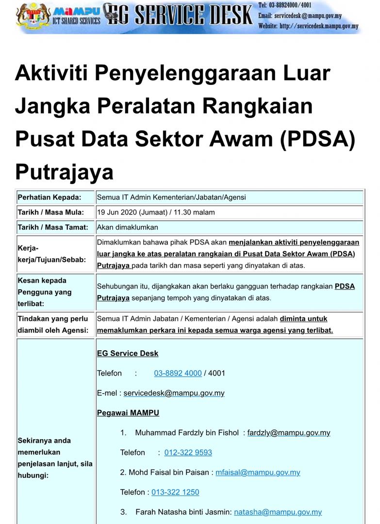 Majlis Perbandaran Kulai Official Aktiviti Penyelenggaraan Luar Jangka Peralatan Rangkaian Pusat Data Sektor Awam Pdsa Putrajaya