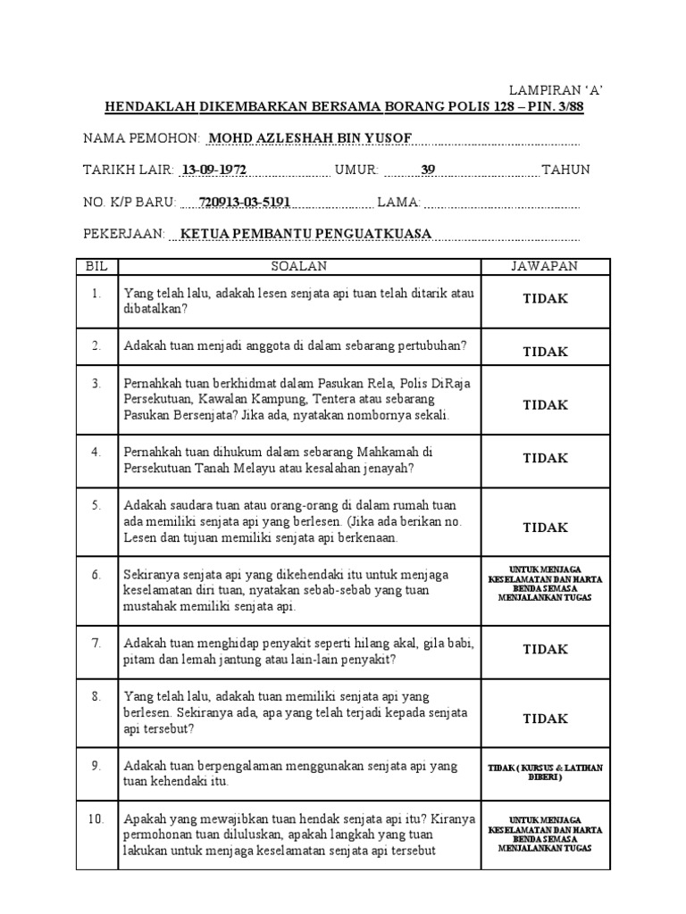 Surat Rayuan Permohonan Senjata Api Viral Blog Q
