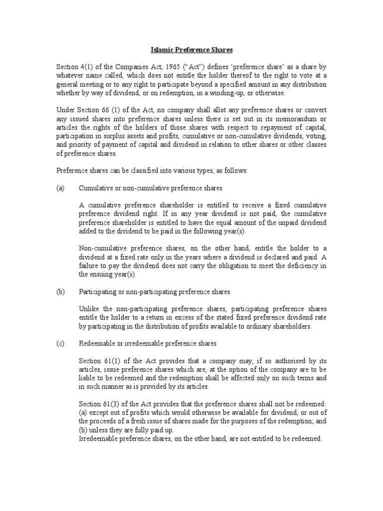 Islamic Preference Shares Preferred Stock Dividend