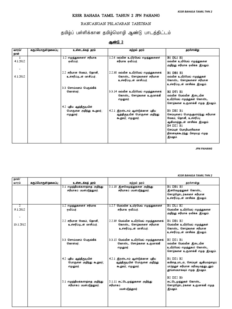 Rancangan Tahunan Bahasa Tamil Sjk Tahun 2 Kssr 2012
