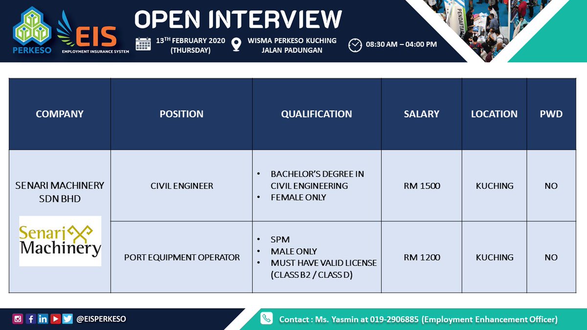 Employment Insurance System On Twitter Temuduga Terbuka Mingguan Negeri Sarawak Tarikh 13 Februari 2020 Khamis Masa 8 30 Pagi 4 00 Petang Tempat Wisma Perkeso Kuching Jalan Padungan Dengan Kerjasama Majikan 1