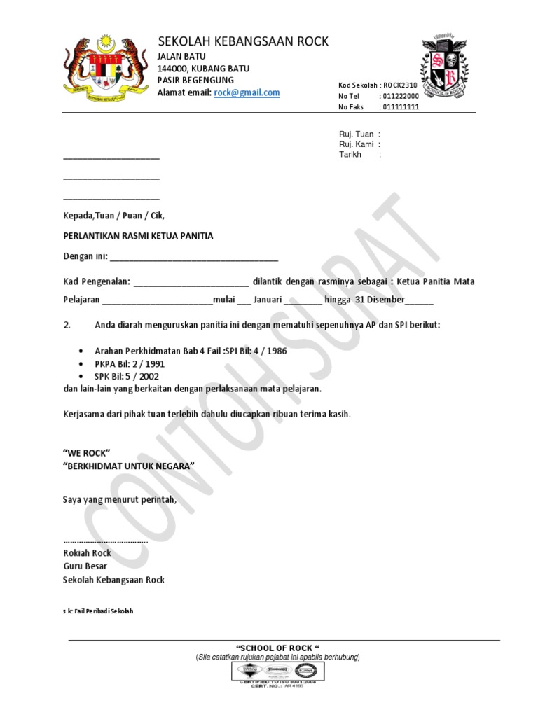 Surat Pelantikan Sebagai Ketua Pentaksir Pentaksir Pt3 2014