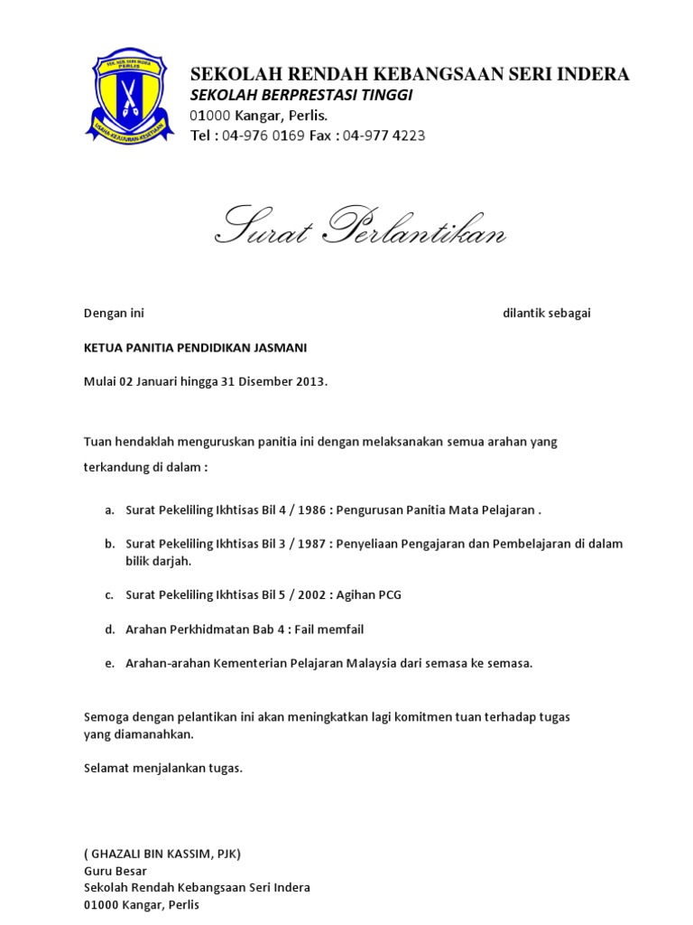 Surat Pelantikan Ketua Panitia Bahasa Melayu